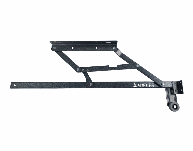 Усиленный механизм со стопором, не требуется изготовление выкатного короба, предельная динамическая нагрузка (800Н), регулировка крепления на уголке механизма (16мм), угол погрешности при складывании (1); раскладывании (1)